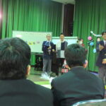 寄宿舎の生活の中で見る高3生のあるある動画が流れると、卒業生も思わず笑っていました。スライドでは、入舎当初の自分たちの寄宿舎での生活の様子が流れ、思い出を振り返り、懐かしんでいる様子でした。